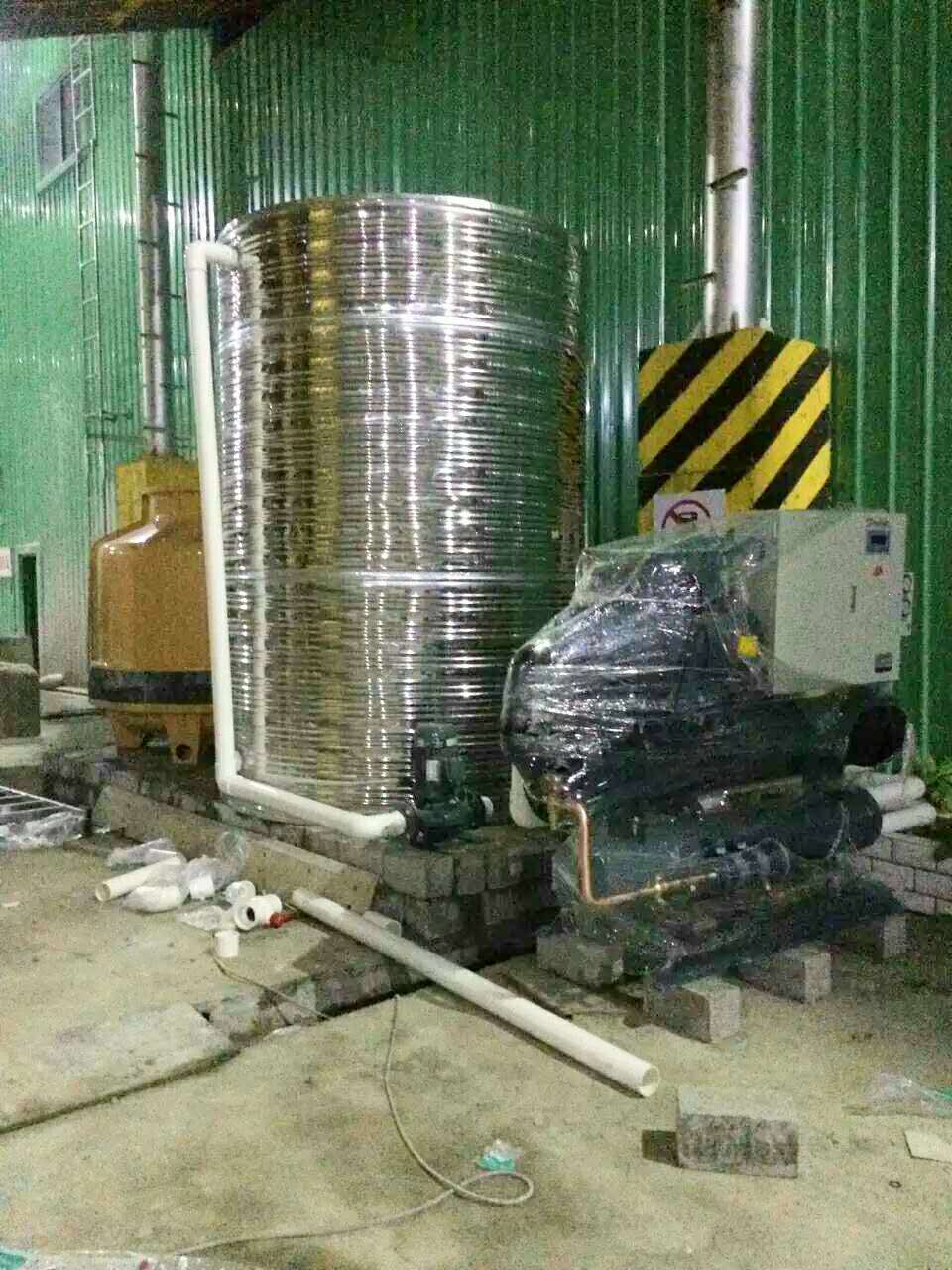 經(jīng)過(guò)供需雙方不斷的計(jì)算對(duì)比,最終確定選用水冷螺桿式冷水機(jī)3臺(tái),并配套冷卻水塔、不銹鋼保溫水箱、循環(huán)水泵等輔助設(shè)備。